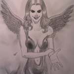“No, Andre, she was wearing the cosmos like a dress. It was a long black dress, low cut and had a slit up one side and it glittered like stars against the darkness. A valise or box of some kind floated by her feet.”